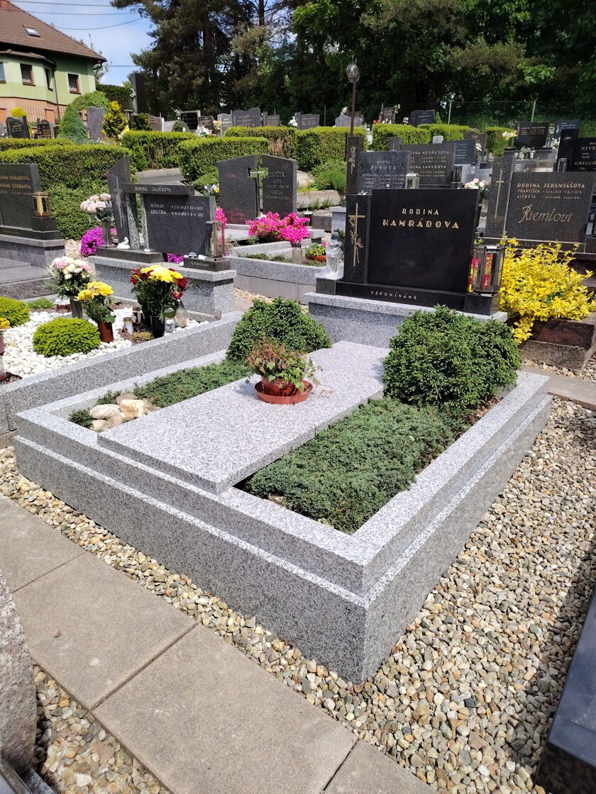 Provádíme výrobu a montáž hrobů na míru, odborné renovace a opravy stávajících hrobů, broušení hrobů teraco (teraso), veškeré stavební práce a další úpravy a opravy hrobů dle vašeho přání. Provádíme také montáže a výrobu parapetů, schodů a kuchyňských desek na míru dle vašeho přáni.